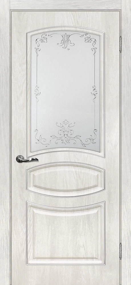 Качественная Межкомнатная дверь Сиена-5 Дуб жемчужный продается по цене 11 875 руб. за полотно. Доступные размеры 550x1900, 600x1900, 600x2000, 700x2000, 800x2000, 900x2000. Так же в наличии большой выбор комплектующих к данной модели, подходящих по цвету и фактуре.