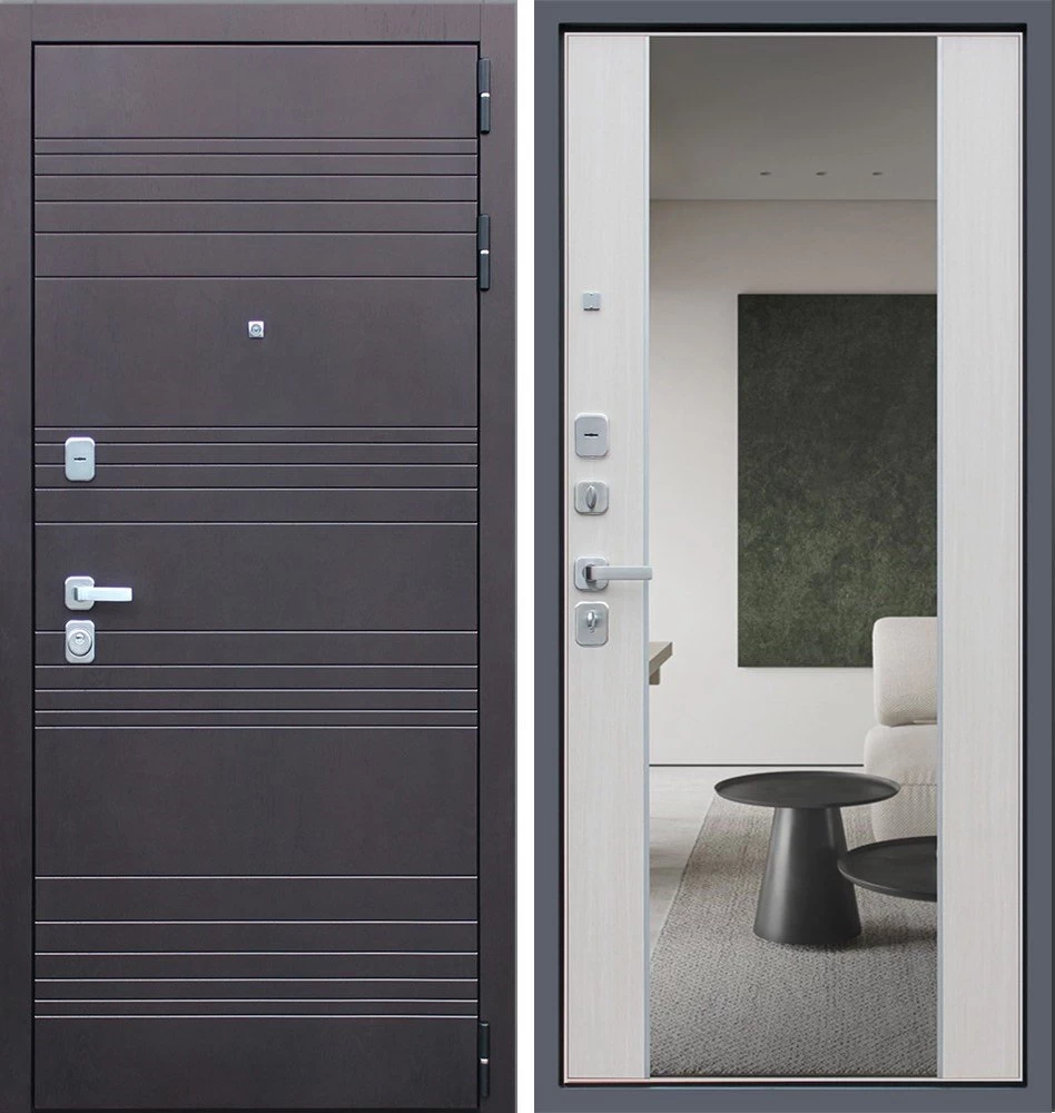 Надежная входная Дверь Дуэт с зеркалом премиум класса по цене 47 045 руб. Большая толщина стали защитит от проникновения в ваш дом, квартиру или коттедж. Используется очень качественная фурнитура: замки, цилиндры, ручки, защелки. Покрытие и отделка двери изготовлено под внимательным контролем производителя. Дверь имеет долгий срок службы и гарантию.