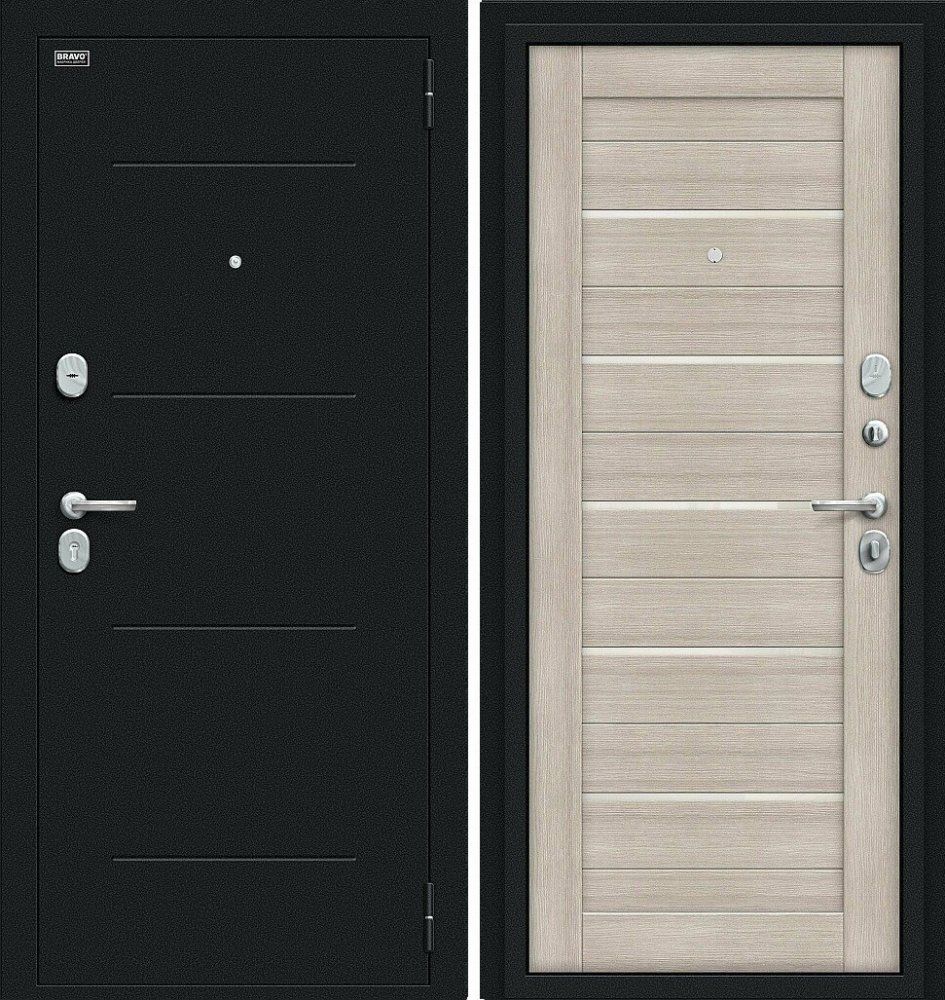 Надежная входная Браво Техно Kale Букле черное/Cappuccino Veralinga премиум класса по цене 34 045 руб. Большая толщина стали защитит от проникновения в ваш дом, квартиру или коттедж. Используется очень качественная фурнитура: замки, цилиндры, ручки, защелки. Покрытие и отделка двери изготовлено под внимательным контролем производителя. Дверь имеет долгий срок службы и гарантию.