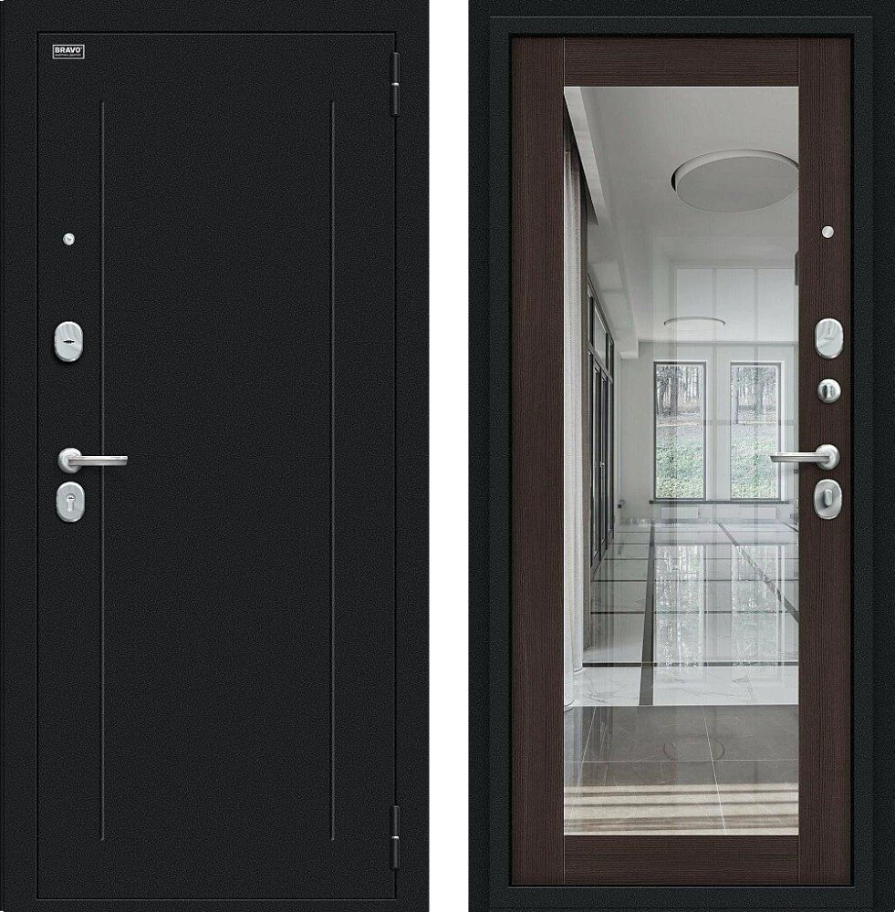 Надежная входная Дверь Браво Флэш Букле черное/Wenge Veralinga премиум класса по цене 32 745 руб. Большая толщина стали защитит от проникновения в ваш дом, квартиру или коттедж. Используется очень качественная фурнитура: замки, цилиндры, ручки, защелки. Покрытие и отделка двери изготовлено под внимательным контролем производителя. Дверь имеет долгий срок службы и гарантию.