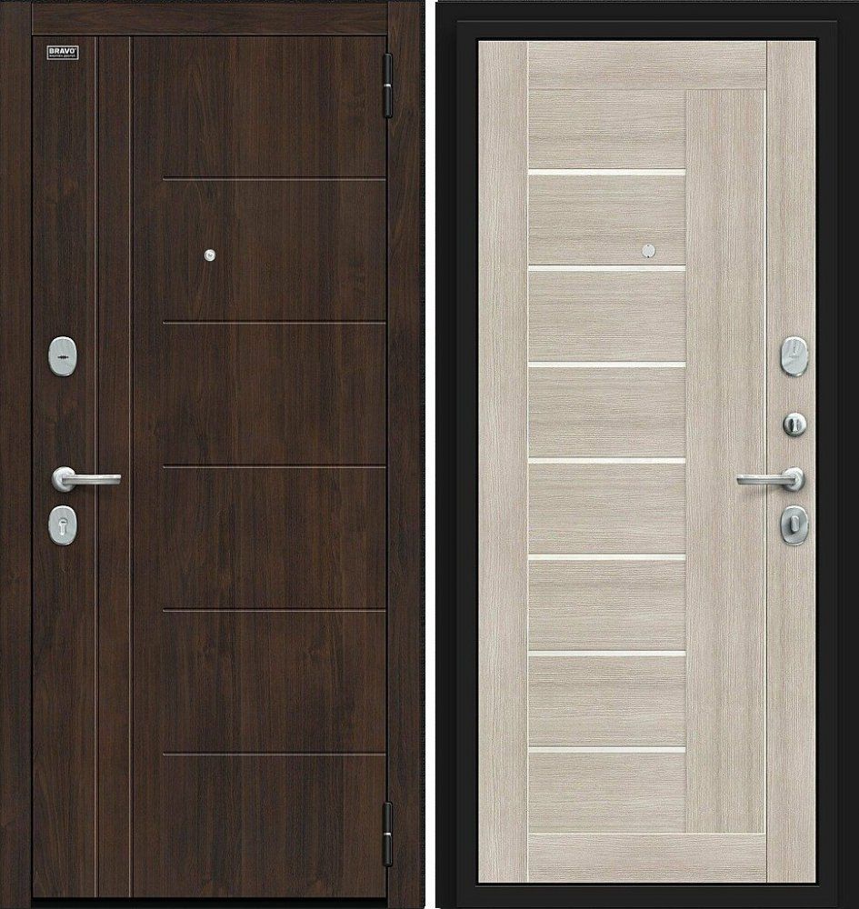 Надежная входная Дверь Браво Модерн Kale Almon/Cappuccino Veralinga премиум класса по цене 38 995 руб. Большая толщина стали защитит от проникновения в ваш дом, квартиру или коттедж. Используется очень качественная фурнитура: замки, цилиндры, ручки, защелки. Покрытие и отделка двери изготовлено под внимательным контролем производителя. Дверь имеет долгий срок службы и гарантию.