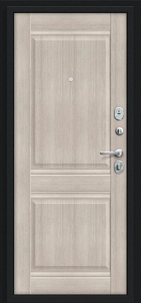 Надежная входная Дверь Браво Некст Kale Букле черное/Cappuccino Veralinga премиум класса по цене 35 465 руб. Большая толщина стали защитит от проникновения в ваш дом, квартиру или коттедж. Используется очень качественная фурнитура: замки, цилиндры, ручки, защелки. Покрытие и отделка двери изготовлено под внимательным контролем производителя. Дверь имеет долгий срок службы и гарантию.