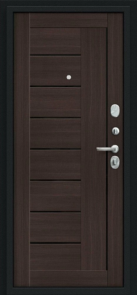 Надежная входная Дверь Браво Проф Букле черное/Wenge Veralinga премиум класса по цене 32 895 руб. Большая толщина стали защитит от проникновения в ваш дом, квартиру или коттедж. Используется очень качественная фурнитура: замки, цилиндры, ручки, защелки. Покрытие и отделка двери изготовлено под внимательным контролем производителя. Дверь имеет долгий срок службы и гарантию.