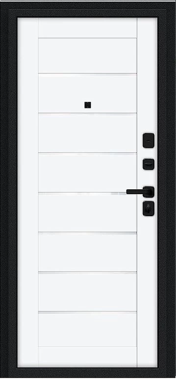 Дверь Браво Техно/SBlack Букле черное/White Silk - недорогая эконом класса по цене 4 295 руб., отлично подходит для временной установки в квартиру под сдачу, строительство, ремонт. Не смотря стоимость, модель хорошего качества.