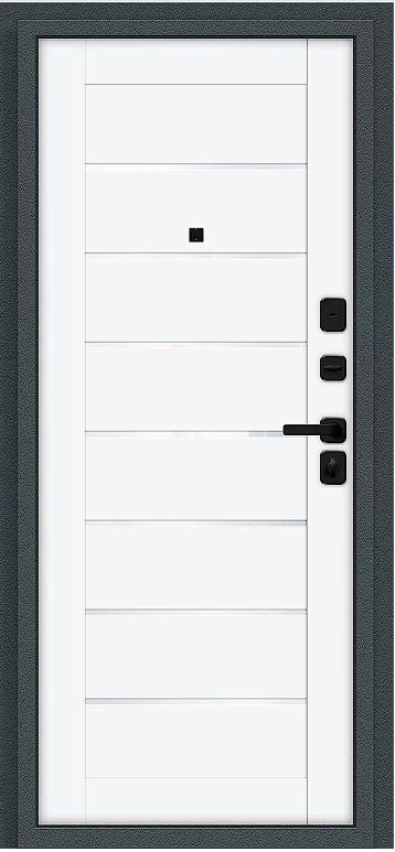Надежная входная Дверь Браво Техно/SBlack Старк антрацит/White Silk премиум класса по цене 35 945 руб. Большая толщина стали защитит от проникновения в ваш дом, квартиру или коттедж. Используется очень качественная фурнитура: замки, цилиндры, ручки, защелки. Покрытие и отделка двери изготовлено под внимательным контролем производителя. Дверь имеет долгий срок службы и гарантию.
