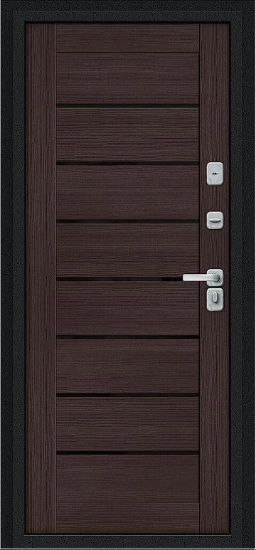 Дверь Браво Thermo Техно Д2/BChrome Букле черное/Wenge Melinga - недорогая эконом класса по цене 4 295 руб., отлично подходит для временной установки в квартиру под сдачу, строительство, ремонт. Не смотря стоимость, модель хорошего качества.