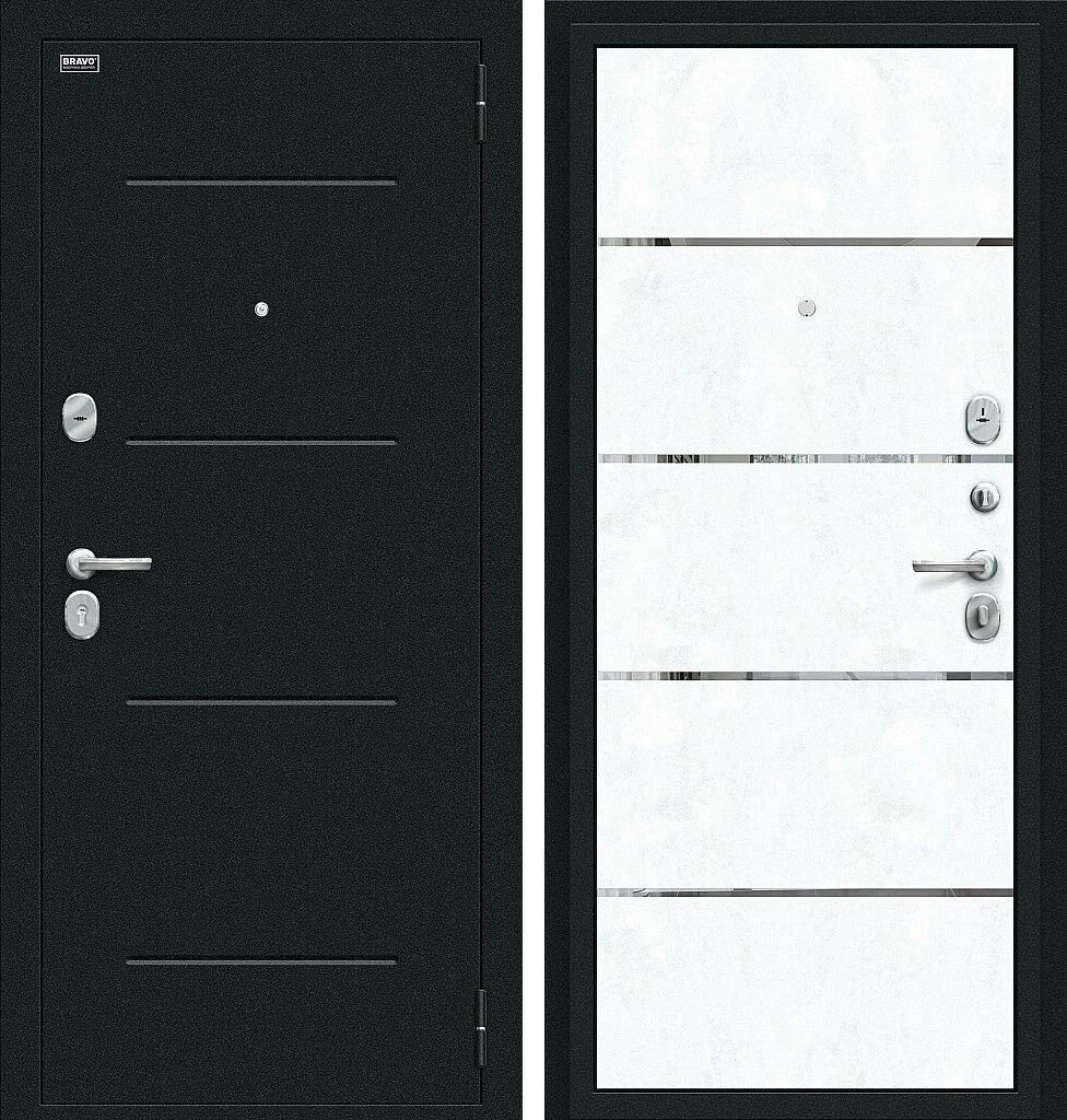 Надежная входная Входная дверь Лайн Букле черное/Snow Art BR4633 премиум класса по цене 30 343 руб. Большая толщина стали защитит от проникновения в ваш дом, квартиру или коттедж. Используется очень качественная фурнитура: замки, цилиндры, ручки, защелки. Покрытие и отделка двери изготовлено под внимательным контролем производителя. Дверь имеет долгий срок службы и гарантию.