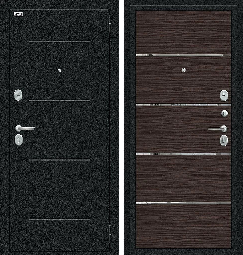 Надежная входная Входная дверь Лайн Букле черное/Wenge Veralinga BR4636 премиум класса по цене 30 343 руб. Большая толщина стали защитит от проникновения в ваш дом, квартиру или коттедж. Используется очень качественная фурнитура: замки, цилиндры, ручки, защелки. Покрытие и отделка двери изготовлено под внимательным контролем производителя. Дверь имеет долгий срок службы и гарантию.