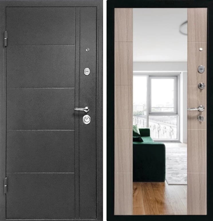 Надежная входная Дверь Эверест Зеркало Сандал Серый премиум класса по цене 33 575 руб. Большая толщина стали защитит от проникновения в ваш дом, квартиру или коттедж. Используется очень качественная фурнитура: замки, цилиндры, ручки, защелки. Покрытие и отделка двери изготовлено под внимательным контролем производителя. Дверь имеет долгий срок службы и гарантию.