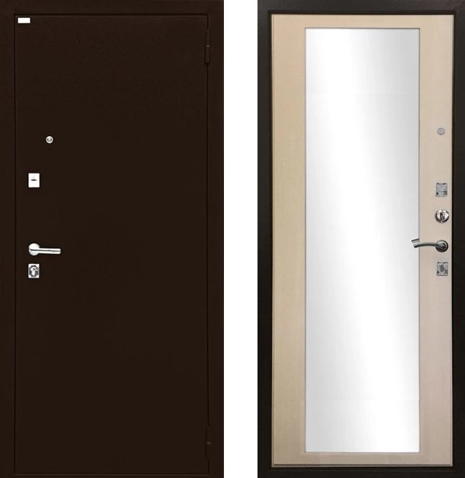 Надежная входная Дверь Ратибор Люкс Зеркало Экодуб премиум класса по цене 30 895 руб. Большая толщина стали защитит от проникновения в ваш дом, квартиру или коттедж. Используется очень качественная фурнитура: замки, цилиндры, ручки, защелки. Покрытие и отделка двери изготовлено под внимательным контролем производителя. Дверь имеет долгий срок службы и гарантию.