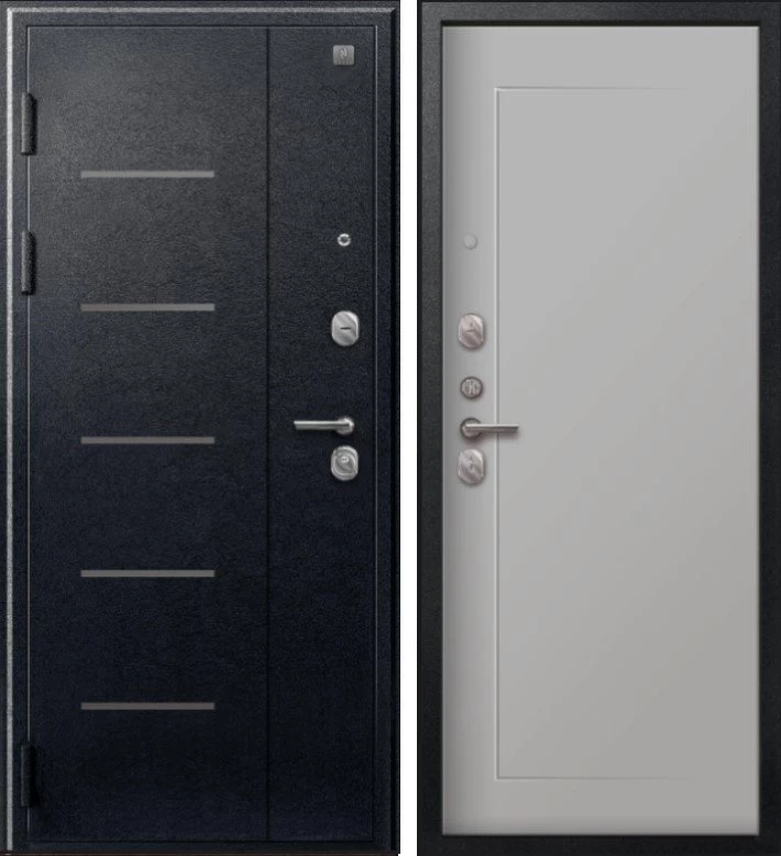 Надежная входная Дверь V-03 Черный муар - Кашемир сильвер премиум класса по цене 39 355 руб. Большая толщина стали защитит от проникновения в ваш дом, квартиру или коттедж. Используется очень качественная фурнитура: замки, цилиндры, ручки, защелки. Покрытие и отделка двери изготовлено под внимательным контролем производителя. Дверь имеет долгий срок службы и гарантию.