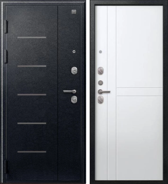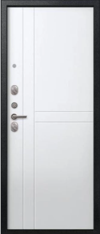 Надежная входная Дверь V-06 Черный муар - Белый премиум класса по цене 38 645 руб. Большая толщина стали защитит от проникновения в ваш дом, квартиру или коттедж. Используется очень качественная фурнитура: замки, цилиндры, ручки, защелки. Покрытие и отделка двери изготовлено под внимательным контролем производителя. Дверь имеет долгий срок службы и гарантию.